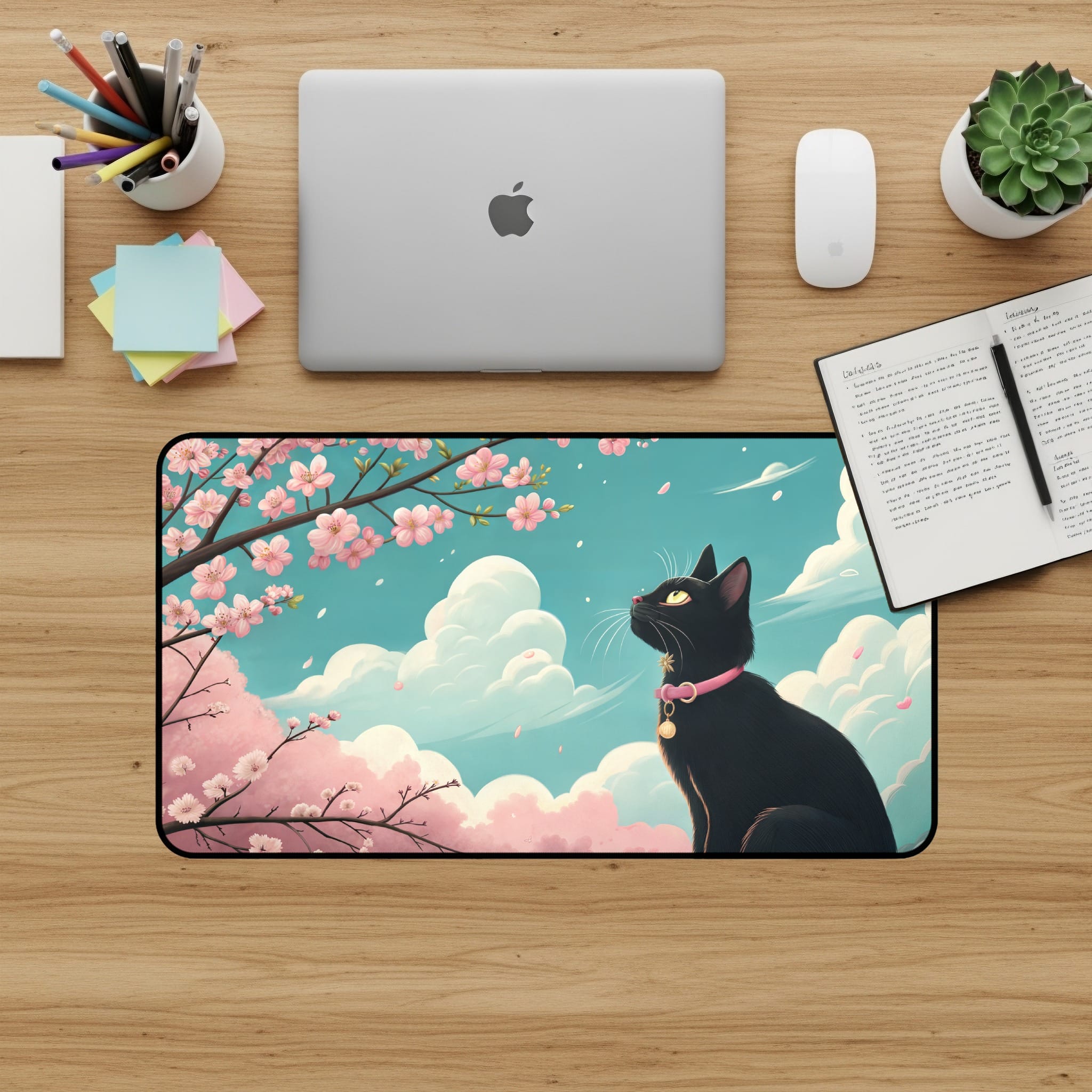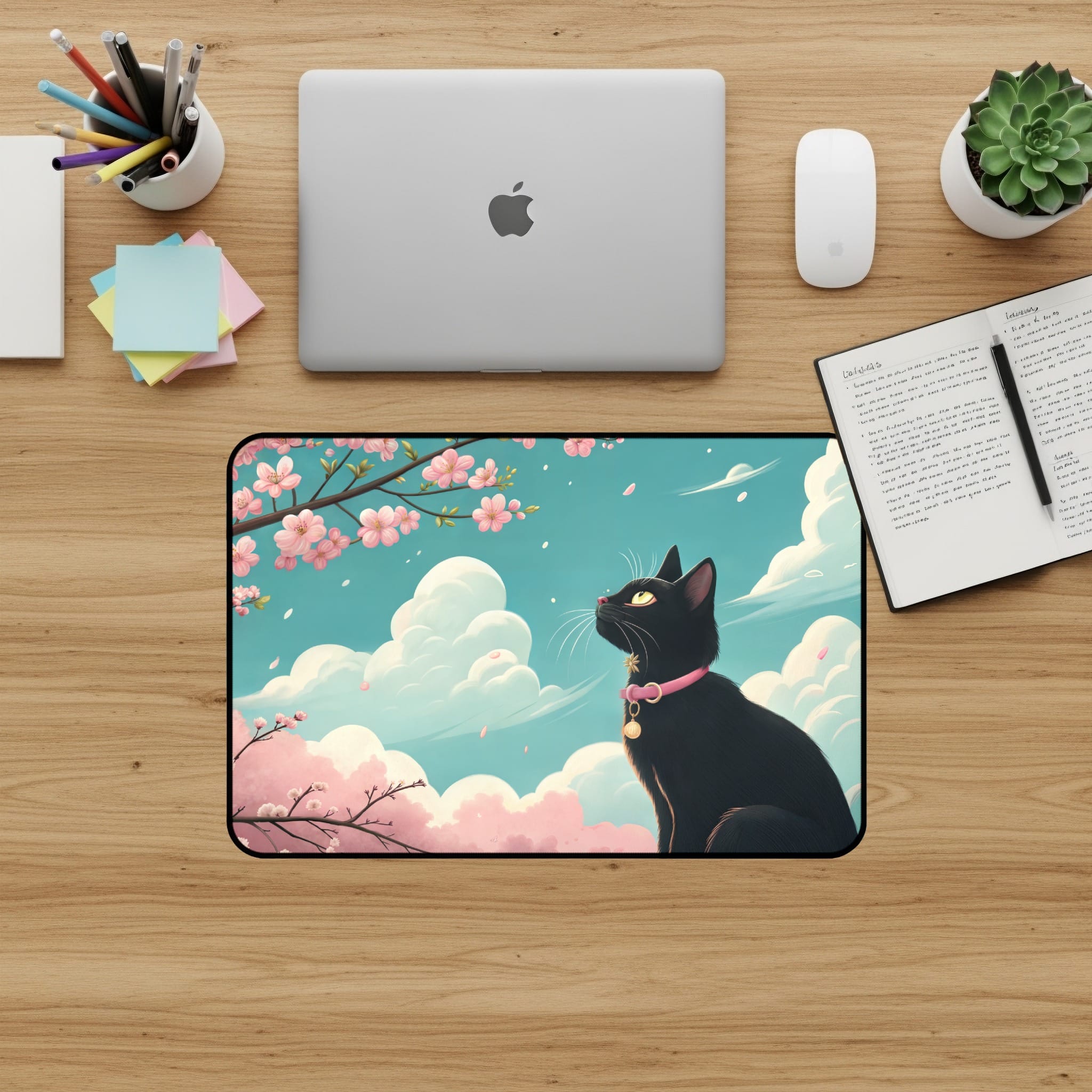 Elevate your workspace with our charming Black Cat and Cherry Blossom Desk Mat! This delightful desk mat features a sleek black cat amidst blooming cherry blossoms and fluffy clouds, creating a serene and stylish atmosphere for your desk. Perfect for cat lovers and those seeking aesthetic desk accessories. 🌸🐈☁️