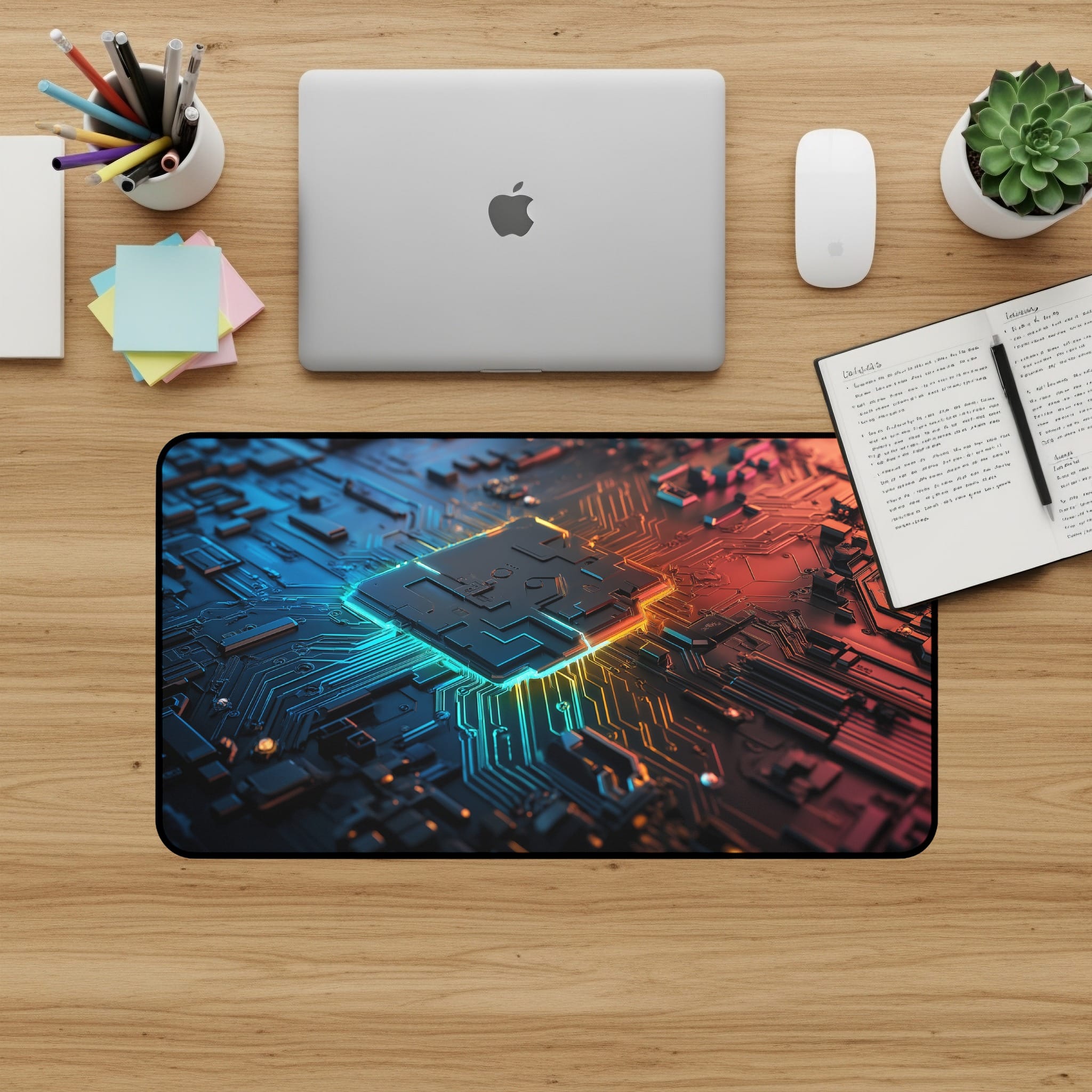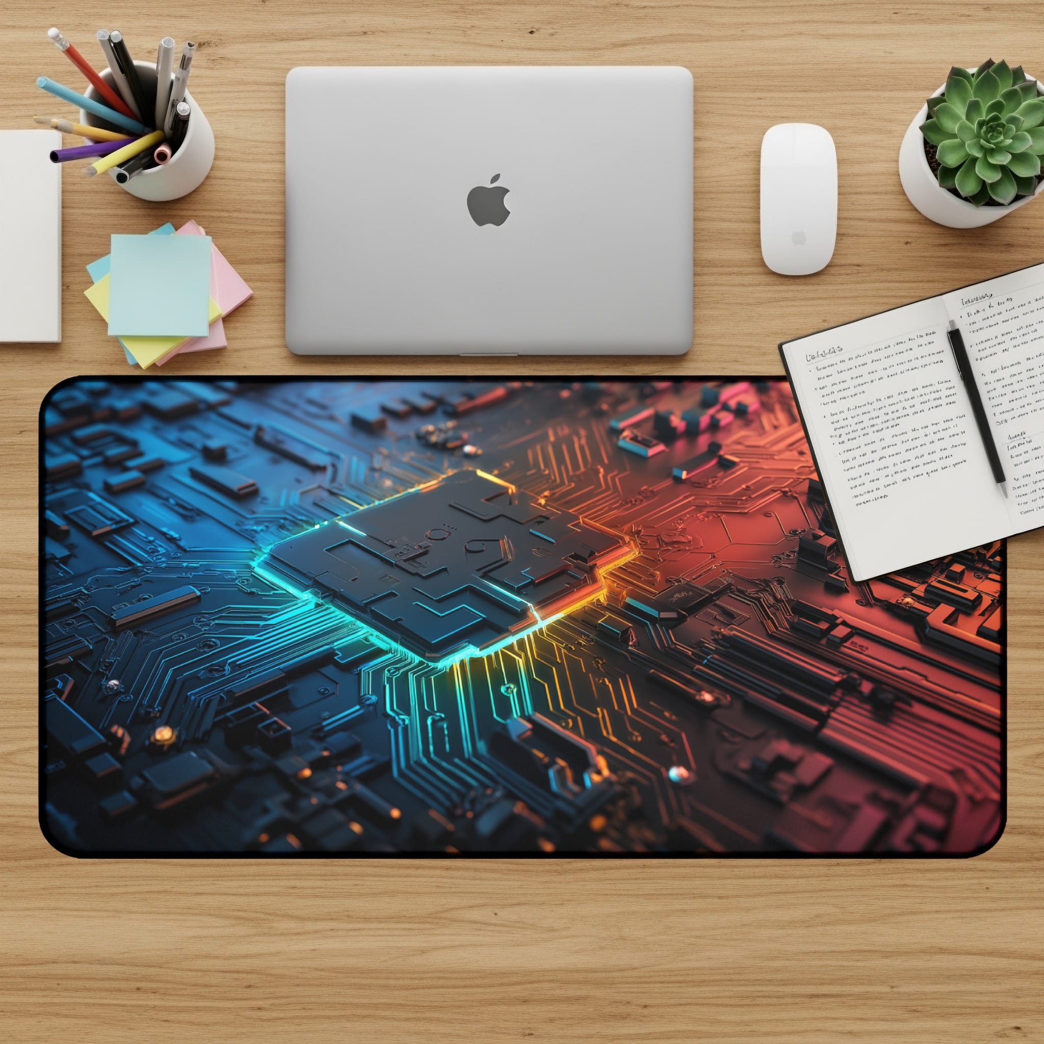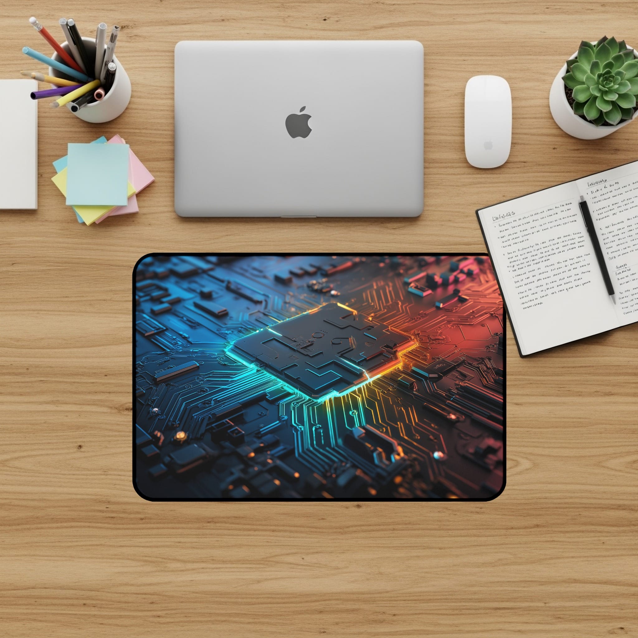 Elevate your workspace with our stunning Circuit Board Desk Mat! This unique desk pad features a vibrant and detailed design of a futuristic circuit board, bringing a touch of technology and style to your desk. Perfect as a mouse pad, desk pad, or simply as a statement piece, this desk mat is a must have desk accessories for any tech enthusiast, gamer, or anyone looking to add a modern flair to their work area 💻.