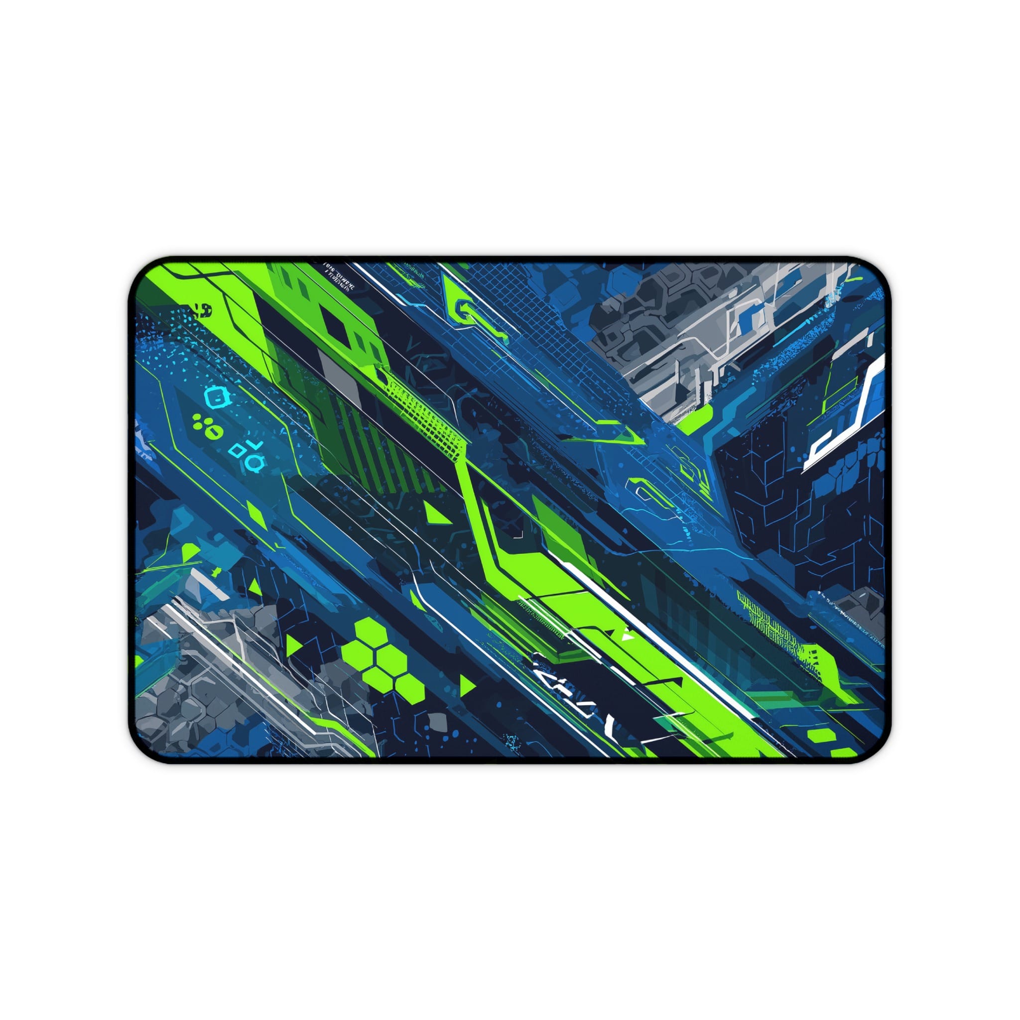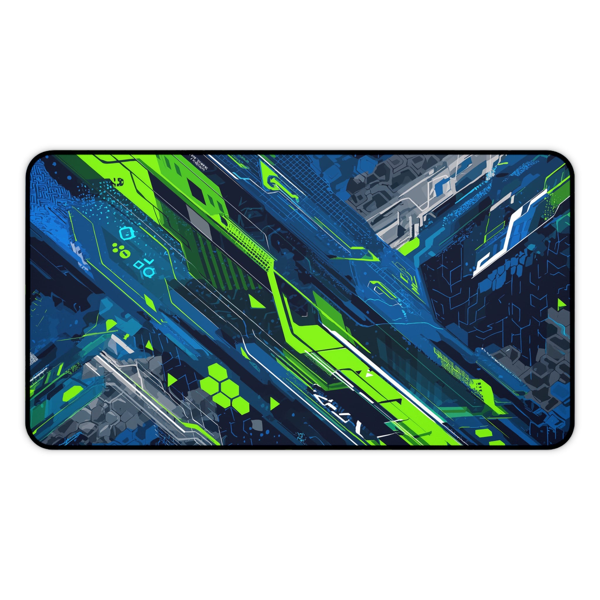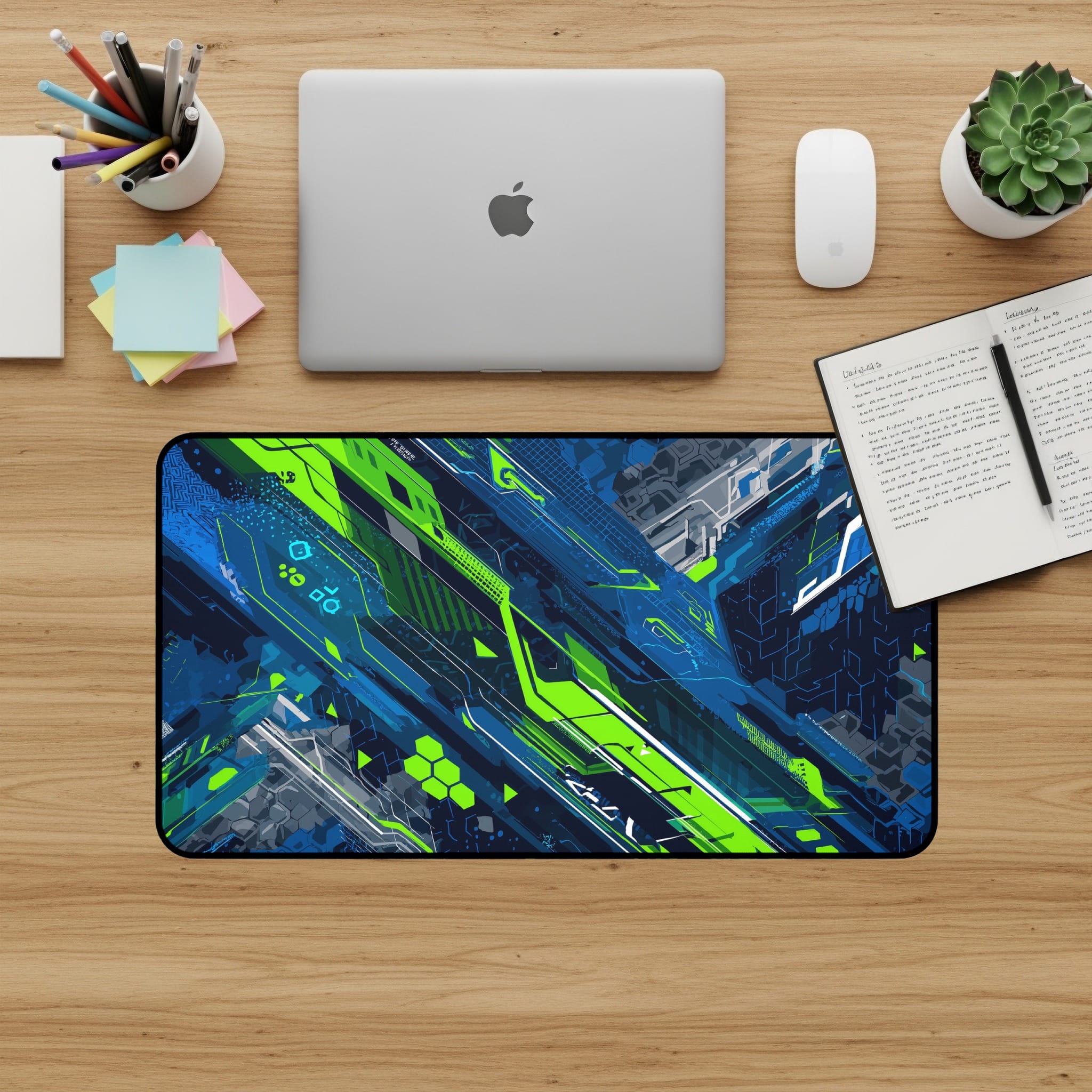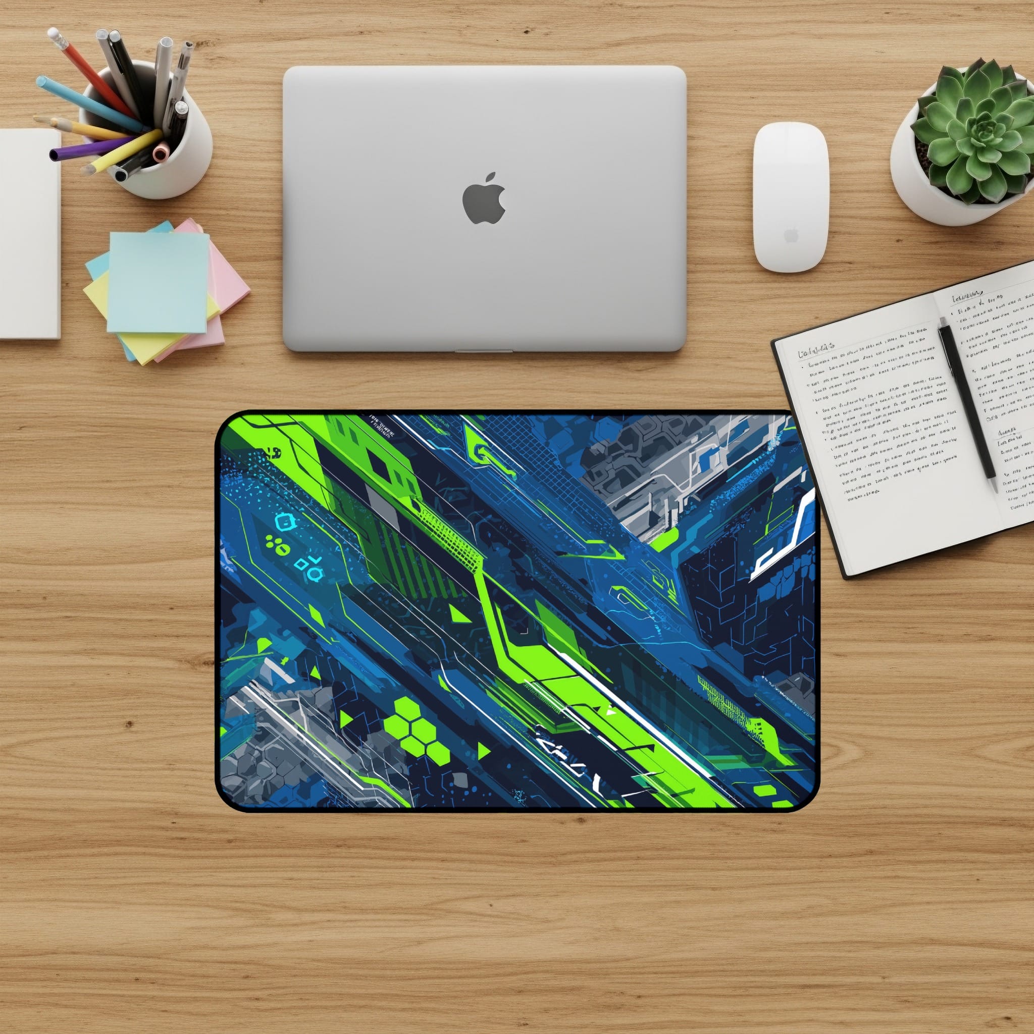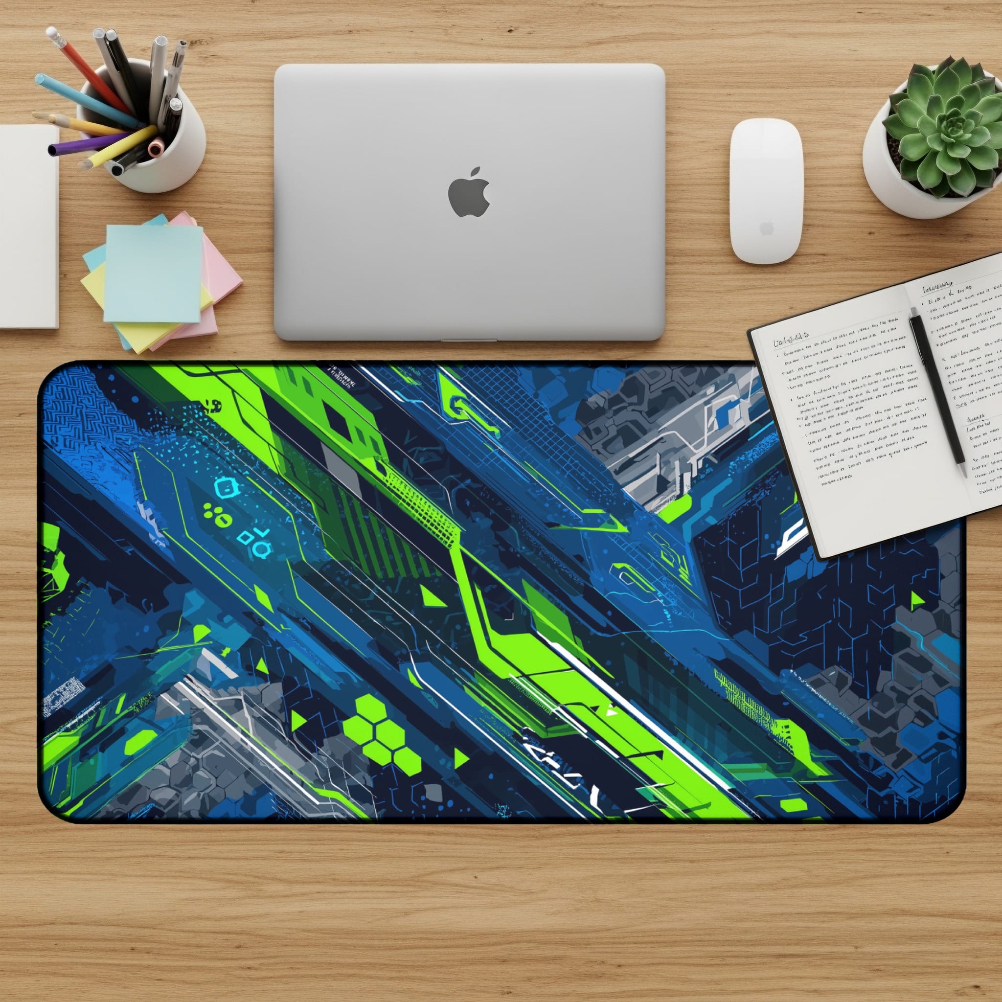 Elevate your workspace with this stunning cyberpunk desk mat! This eye catching design features a futuristic, abstract pattern in vibrant blues and greens, adding a touch of style and personality to your desk setup. Perfect for gamers, designers, or anyone who wants to add a modern edge to their workspace. Upgrade your desk today! 💻🖱️✨