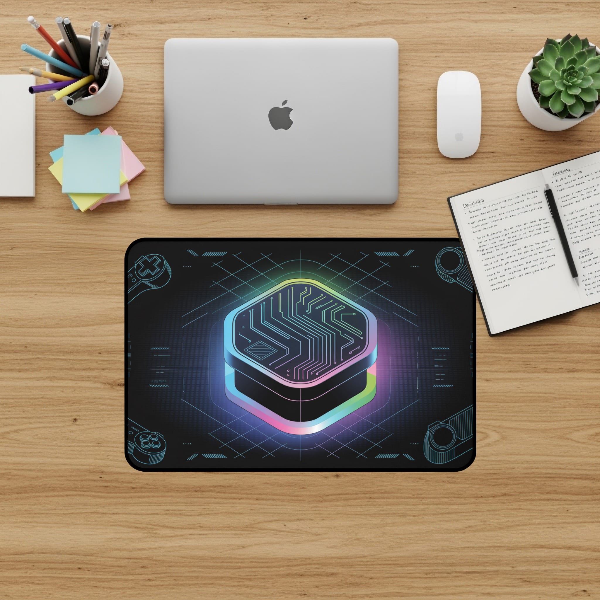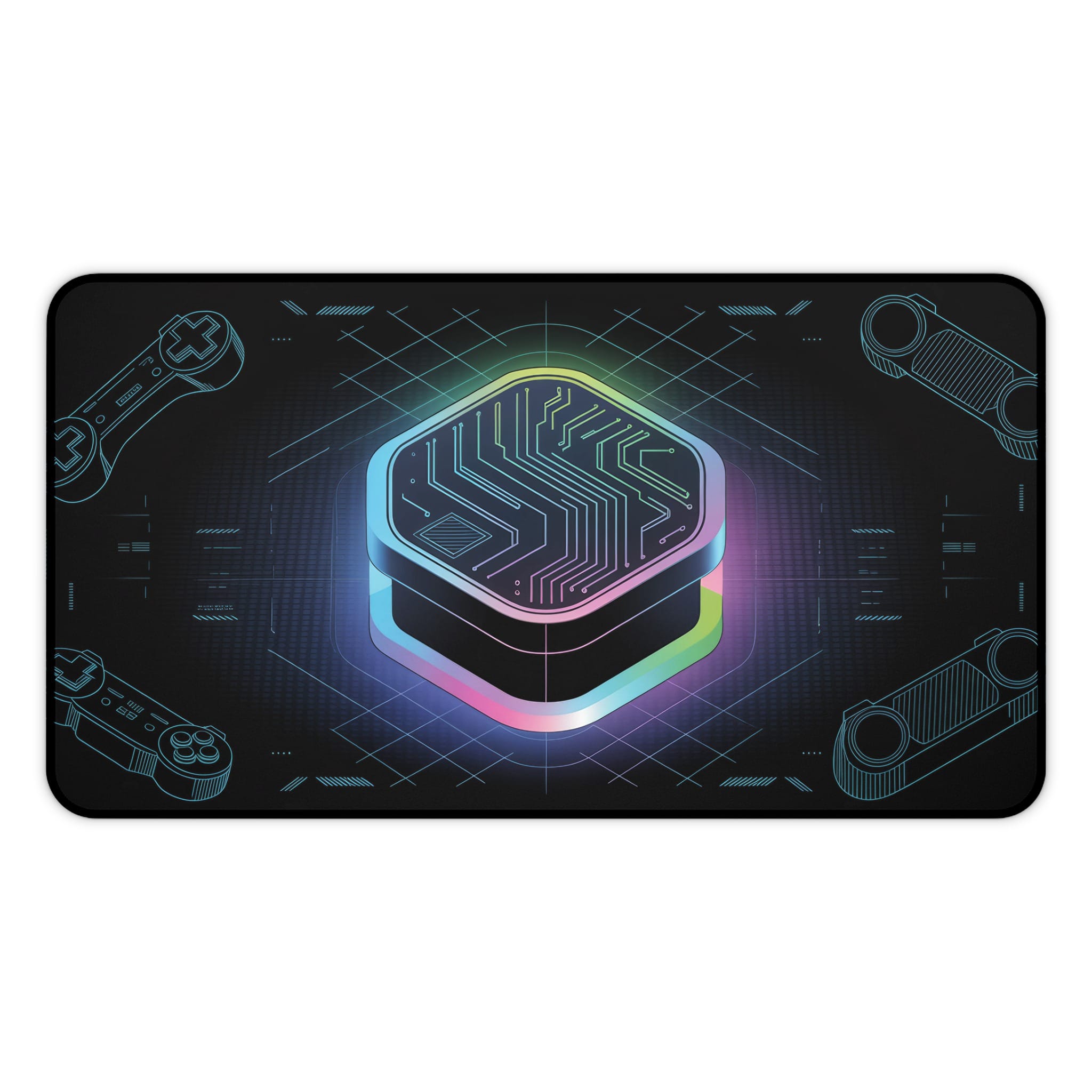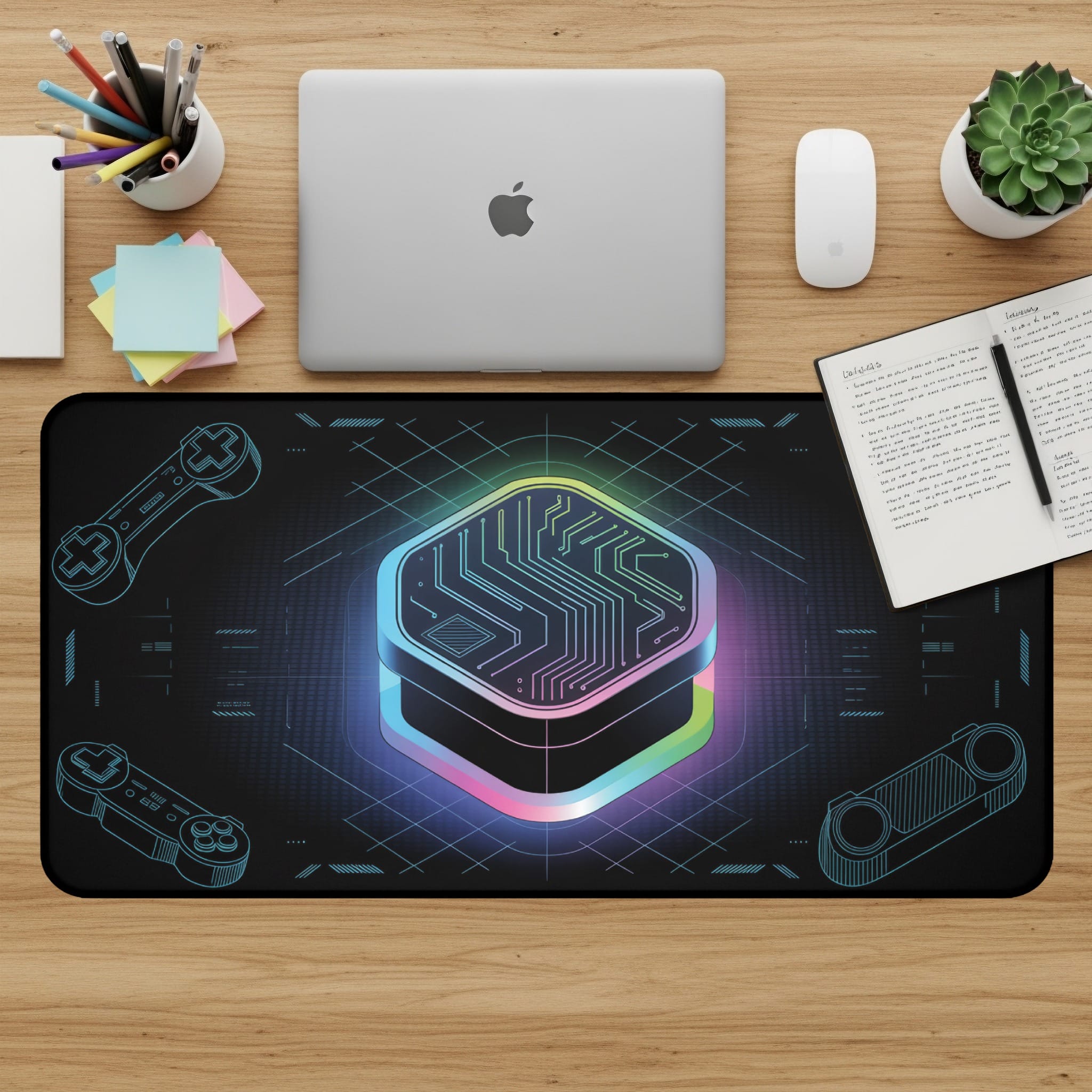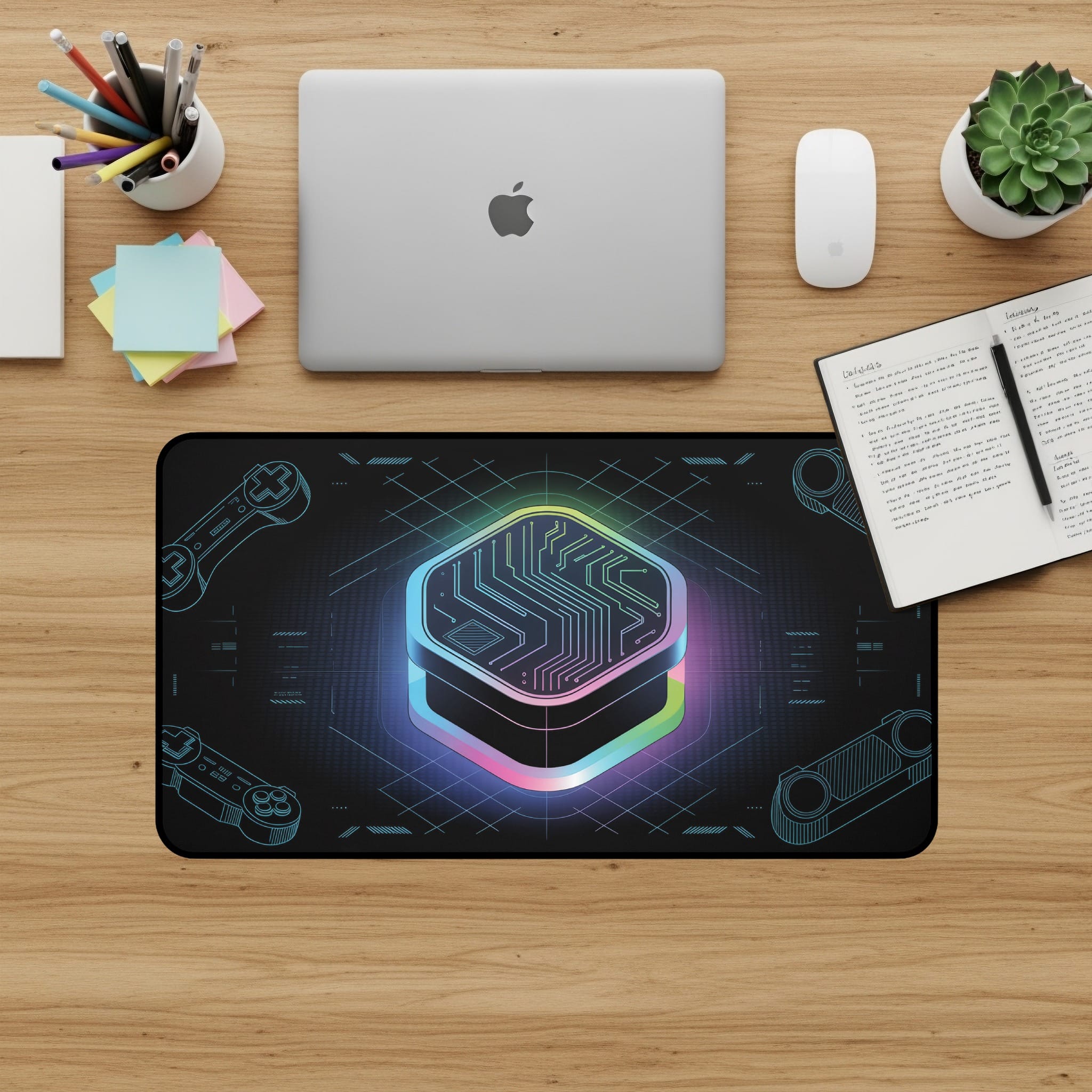 Elevate your gaming or workspace with this sleek and stylish gamer desk mat 🎮! Featuring a modern circuit board design with vibrant colors and outlined controllers, this desk mat is the perfect addition to any setup 🖥️. Upgrade your space with this unique and functional desk accessory that combines aesthetics with practicality ✨.