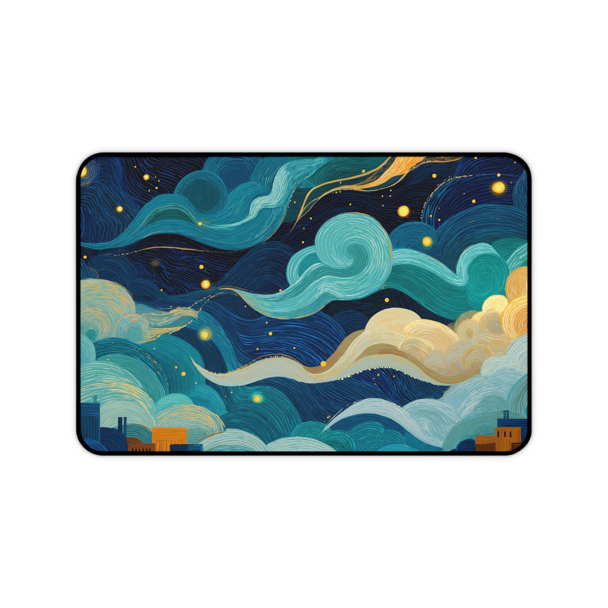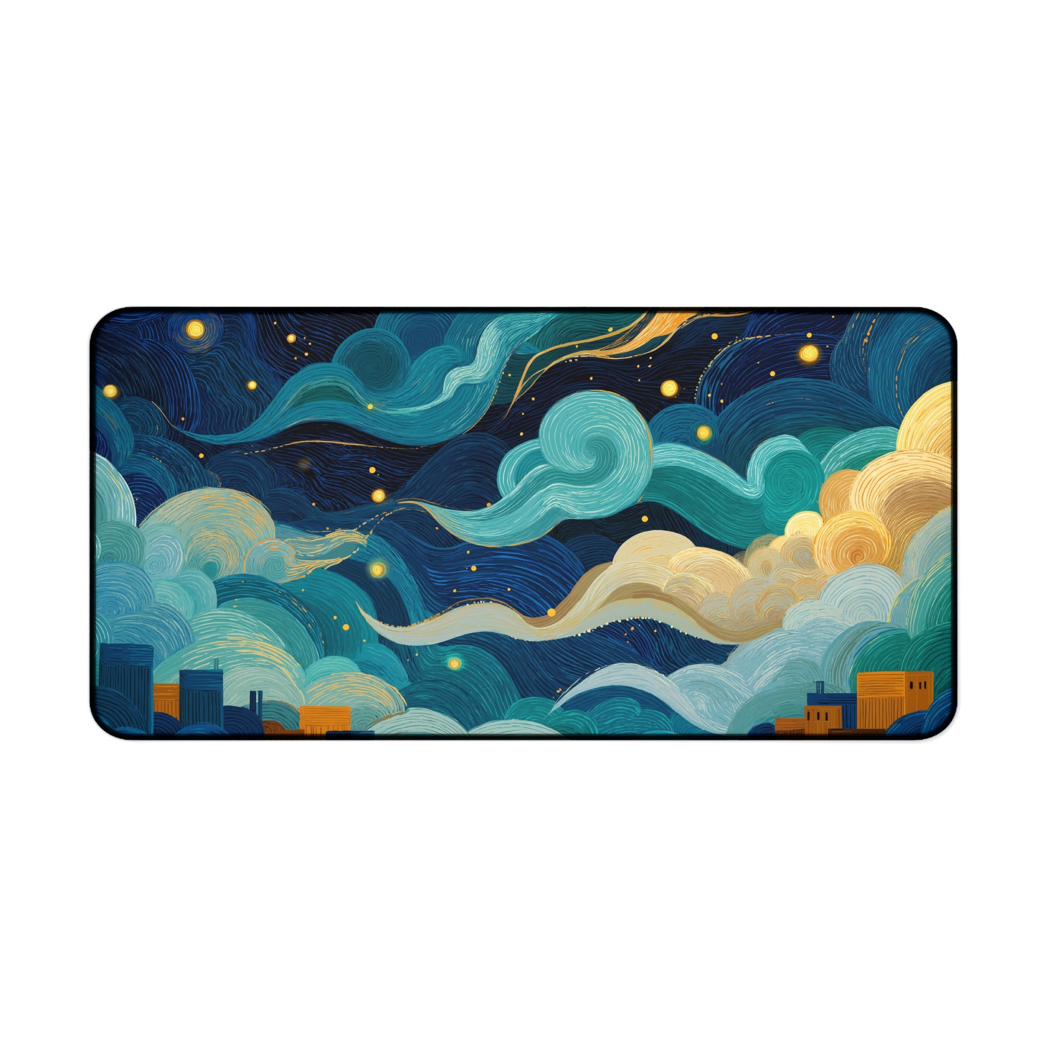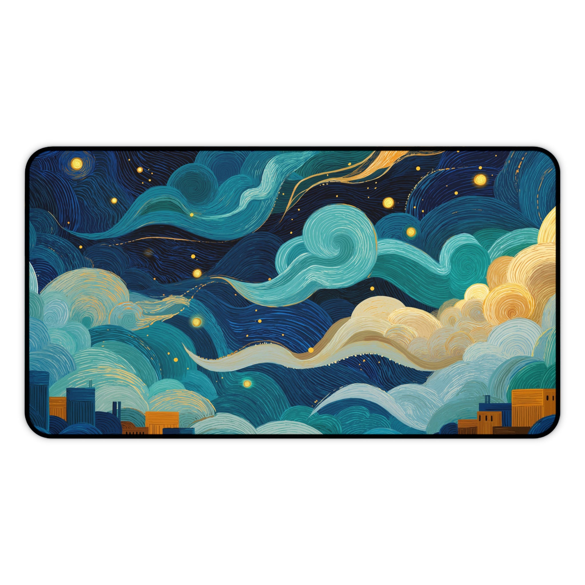 Elevate your workspace with this stunning desk mat featuring an abstract night sky over a cityscape. This captivating design brings a touch of artistic flair to your desk setup and enhances your work or gaming experience. Get ready to fall in love with your desk setup all over again! 💖