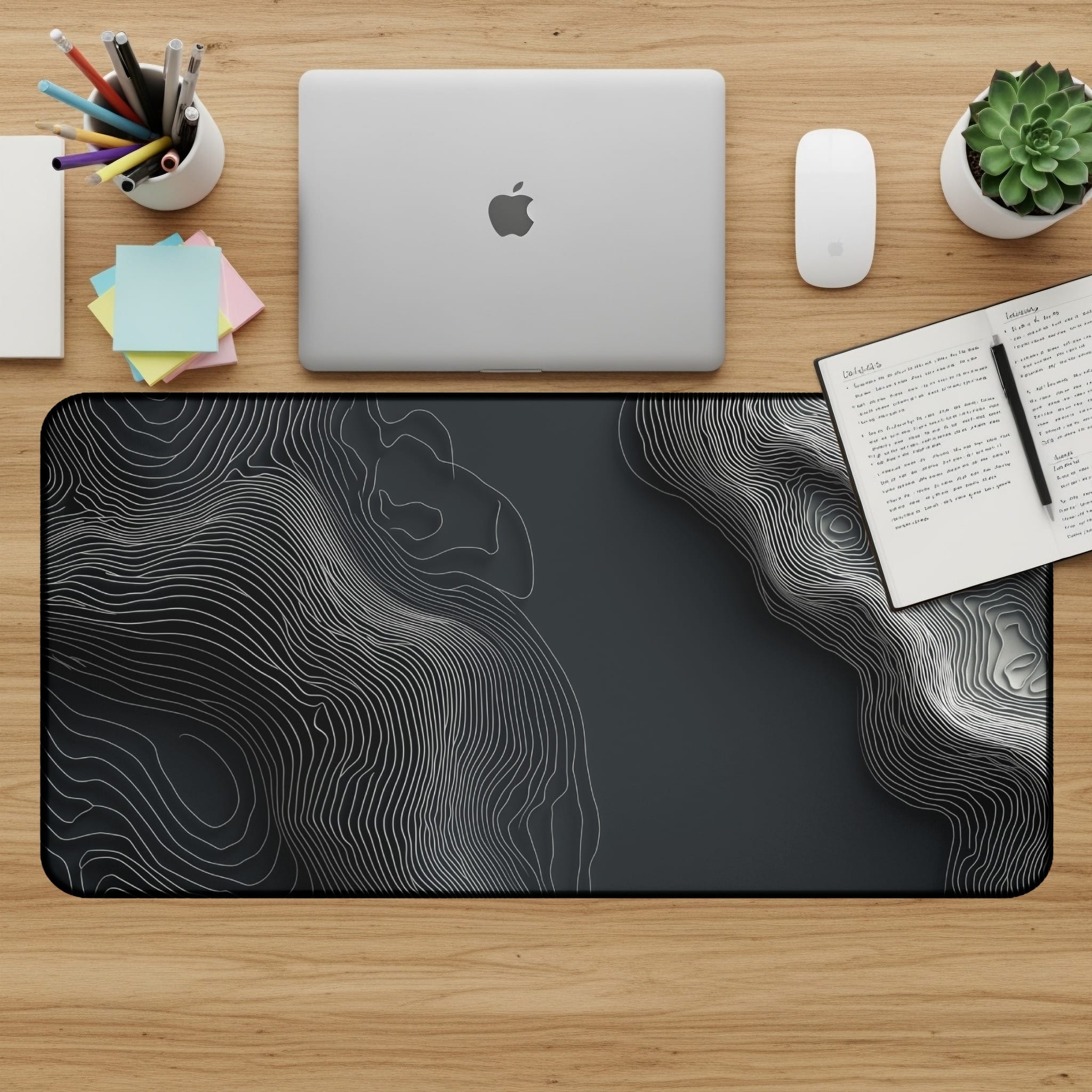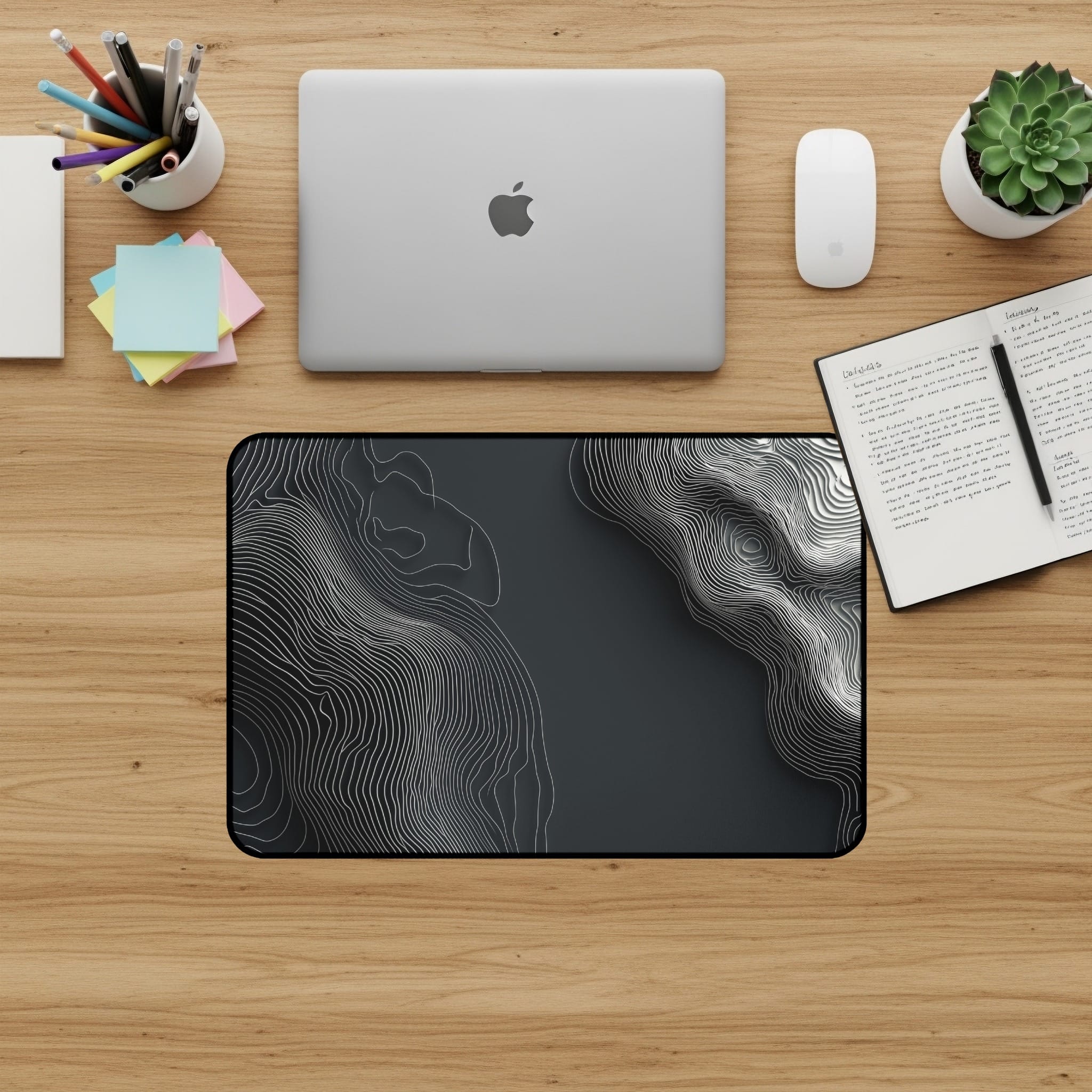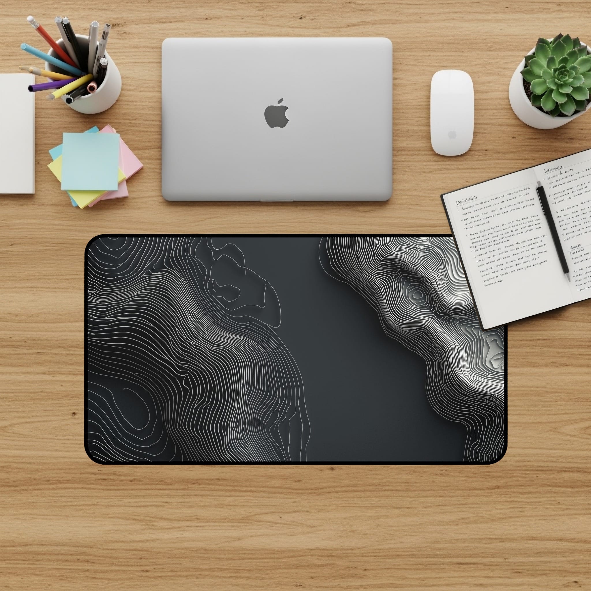 Elevate your workspace with our stylish Topographic Desk Mat, featuring an abstract design inspired by topographic maps! 🗺️ Perfect as a mouse pad, desk pad, or a statement piece for your office decor. This desk mat is designed to add a touch of modern elegance to any desk setup. Whether you are working, gaming, or simply browsing, our desk mat provides a smooth and comfortable surface for all your needs.